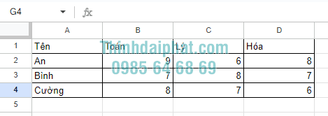 B2>8: Kiểm tra xem điểm Toán của An (ở ô B2) có lớn hơn 8 hay không.